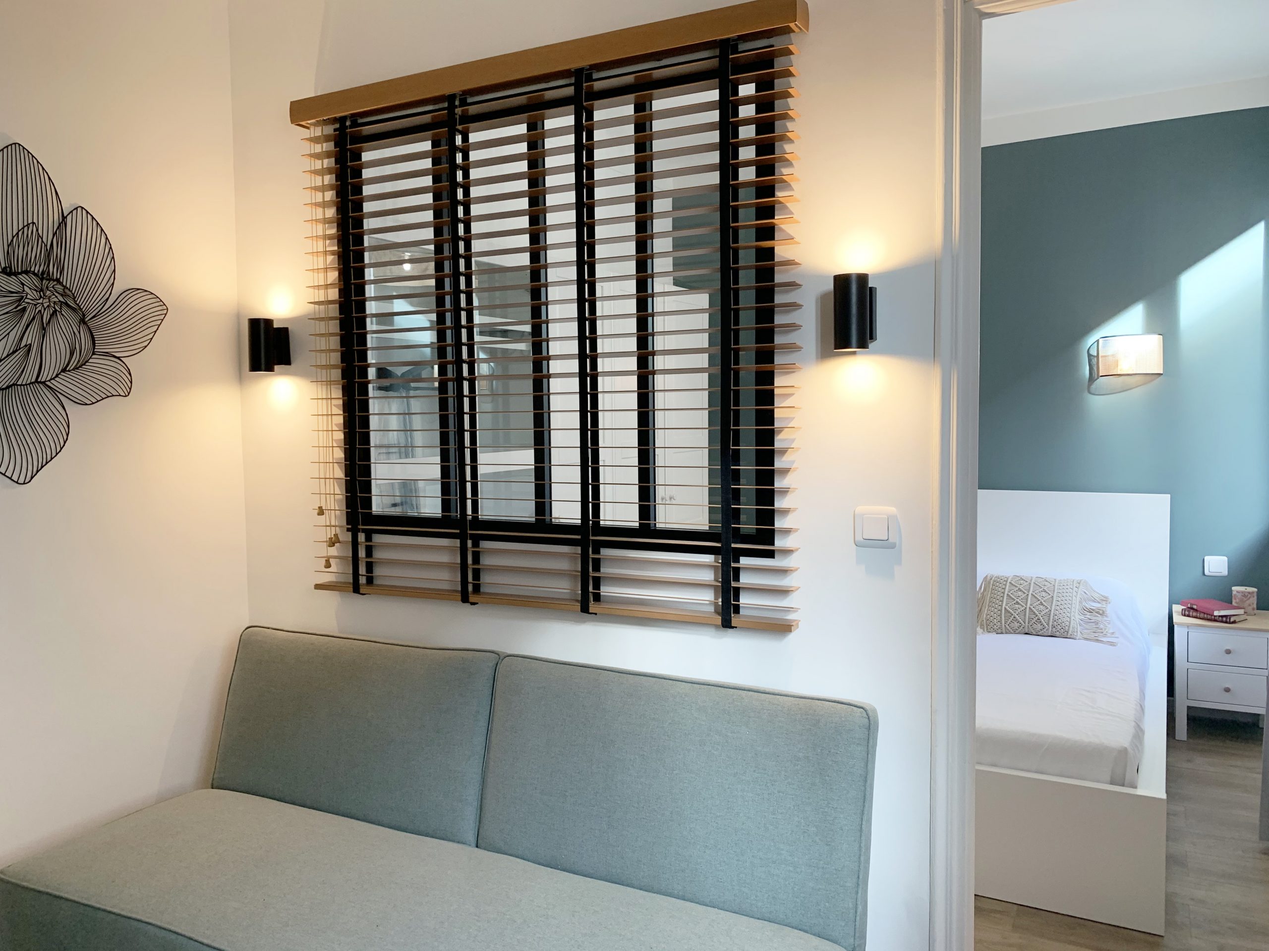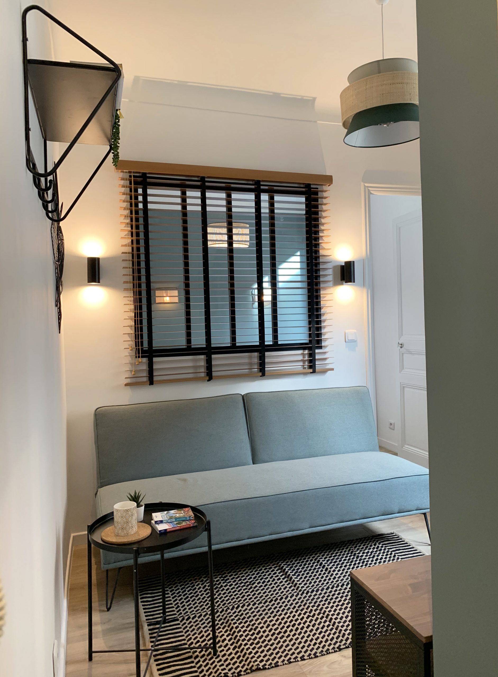 Dans un espace restreint, chaque centimètre devient précieux. Le propriétaire de cet appartement Niçois avait pour objectif d’en faire un investissement locatif. Malgré la contrainte d’espace, chaque zone a été optimisée pour devenir fonctionnelle avec une révision complète du plan pour y intégrer une salle de bain. La chambre est séparée par une cloison avec une verrière laissant filer le regard à travers les espaces. Avec ses murs colorés, le style doux et pétillant de ce petit appartement est parfait pour une escapade le temps d’un week-end.